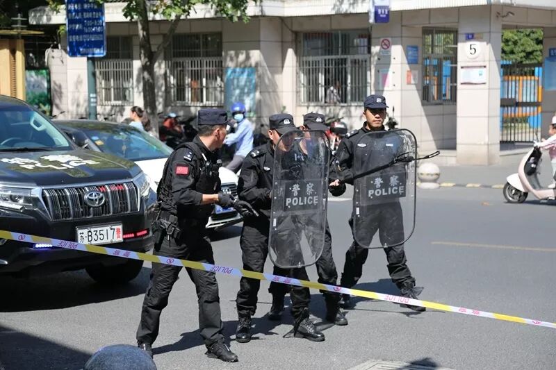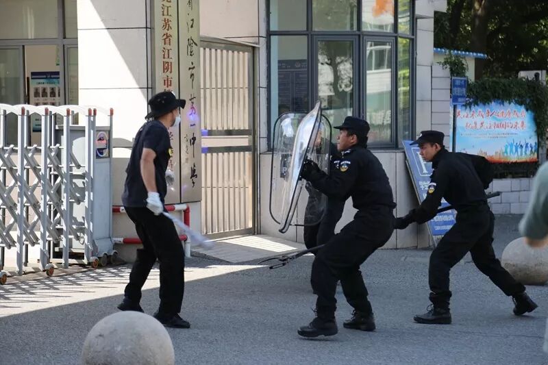 2019.9.23 为进一步加强师生应对突发暴恐事件的防范意识,提高面对暴恐事件的合理处理、自护自救及有效逃生避险的能力,最大限度的减少因暴恐事件对师生造成的伤害,确保学校正常教学秩序和师生员工人身安全,努力实现“平安校园”的工作目标,9月23日下午,市君山派出所陈所带领警员及江阴一中安监部门在江阴市第一中学开展了校园“防恐防暴”应急演练活动。 开展防暴演练 共创平安校园 演练准时开始。一名“暴恐分子”持刀企图闯入校园,被保安及时阻拦在校门外。匪徒嚣张地晃动大门大喊大叫,值班保安立即通过联防联勤对讲机呼叫派出所支援,闻声赶来保安与“暴恐分子”进行周旋,以拖延时间。迅速通知各班老师快速到教室,关闭门窗,做好防护工作,切实保护好学生安全。 得知险情,联防队员及特警持器械迅速赶到校门口,与暴恐分子展开周旋、搏斗,阻止其进入校园。最终,成功制服了该 “暴恐分子”。“暴恐分子”被带走后,陈所宣布演练结束,并进行了总结,希望全体师生以此次演练为契机,牢固树立“安全第一”的意识,保护生命、热爱生命,提高自己面对恐怖袭击时的应变能力和生存能力。 此次演练,考验了保安的警惕性,让全体师生对恐怖暴力事件发生时的应急措施、逃生方法有了切身的体验。同时,学生的自我保护意识、教职员工的防暴意识与处理突发事件的应变能力得到了提高。学校安全工作,责任重于泰山,学校将以此为契机,进一步提高学校安全防范工作的实效性,确保校园环境的和谐稳定。 • end • (建设平安校园,构建和谐社会)