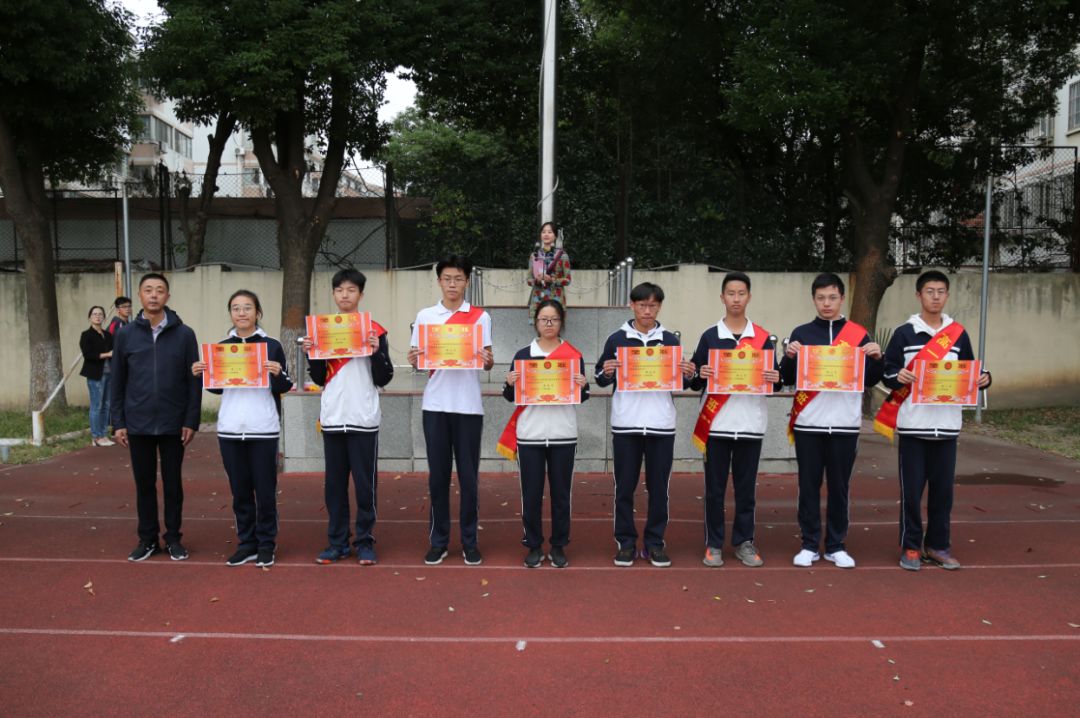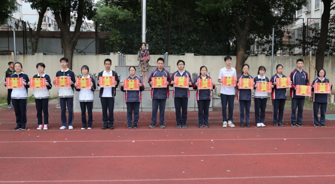 10月14日上午 一中阳光运动会表彰大会 在学校操场隆重举行 下面是现场回顾 大会由校德育处副主任包彩娥主持 首先 总裁判长陈龙老师宣布获得各年级团体总分前八名的班级名单 副校长束红伟为获得年级团体总分前八名的班级颁奖 随后 德育处主任章岐男宣布获得入场式一等奖的班级名单 束红伟副校长为获得入场式一等奖的班级颁奖 在这里要对所有的老师、运动员 及默默付出的学生志愿者们 送上最最最最真挚的 敬意和感谢 你们辛苦了 运动会的激情还未褪去 精彩的画面仿佛还停留在昨天 就让我们且行且努力 为学校争取更多的荣誉而拼搏 供稿:包彩娥 摄影:陈钢